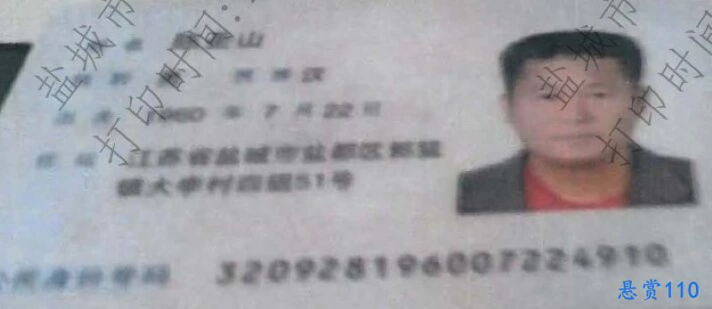 被悬赏人:陈圣山,男,1960年7月22日生,居民身份证号码320928196007224910 ,住盐城市世纪大道1333号乔庄小区3幢302室。